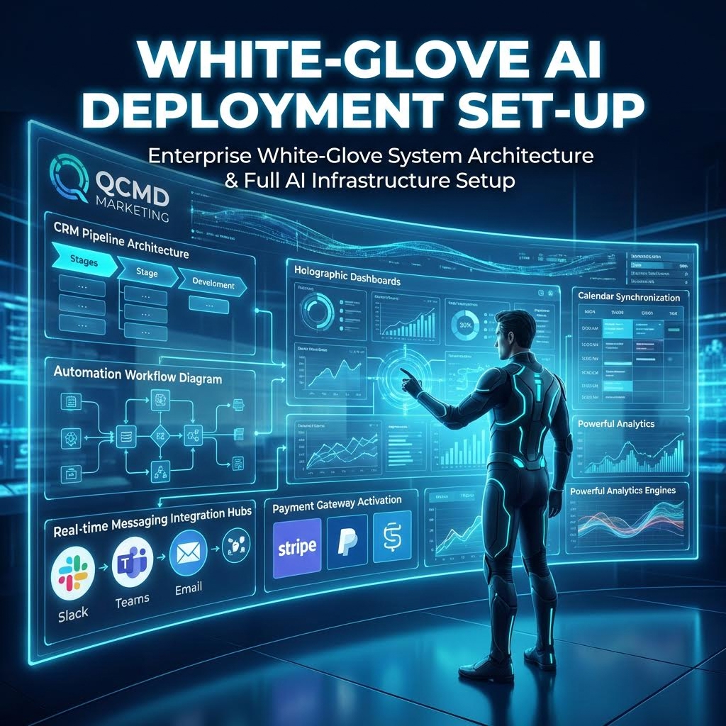 White-Glove AI Deployment is a complete done-for-you setup and configuration of your AI, automation, CRM, and messaging infrastructure.